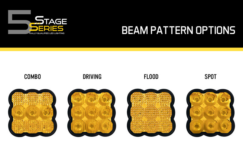 Features Yellow replacement lens for SS5 LED Pod Made out of durable polycarbonate with preinstalled o-ring seal Advanced TIR optics provide high efficiency and focus Available in Driving Flood Combo or Spot beam patterns Overview. This yellow lens is a direct replacement for the original main lens in your SS5 LED Pod. It can be used to change both the color and output pattern with a quick swap! Made of durable optical-grade polycarbonate each lens comes with an integrated o-ring to maintain a watertight seal. Colors. SS5 LED pod lenses are available in clear material producing white light or a selective yellow filter. You can change the color of your lights by swapping out the lens but please note that changing colors may not be perfect with these lenses because different LEDs are used depending on the color of light you originally purchased. If you purchased White pods originally they have 6000K white emitters. Yellow SS5s come with 4000K emitters. If you purchase these replacement yellow lenses and install on a pod that was originally white the result will be a light hyper yellow color as the cool white LEDs shine through the yellow lens. It will not match standard Yellow SS5 pods which are a golden yellow color. If you would like to match the original yellow color we would recommend our yellow covers. Easy Swap. Changing the main lens in the SS5 takes just a few seconds! Remove the eight torx-head screws from the back frame pull the old lens and o-ring assembly out and put in your new lens which comes with the o-ring preinstalled. Take care not to touch the inner optical surface of your new lens during the swap or wear a pair of gloves to keep things clean. The locating pins ensure correct alignment and rotation. Reinstall the eight screws so they are very hand-tight and you are ready to shine!